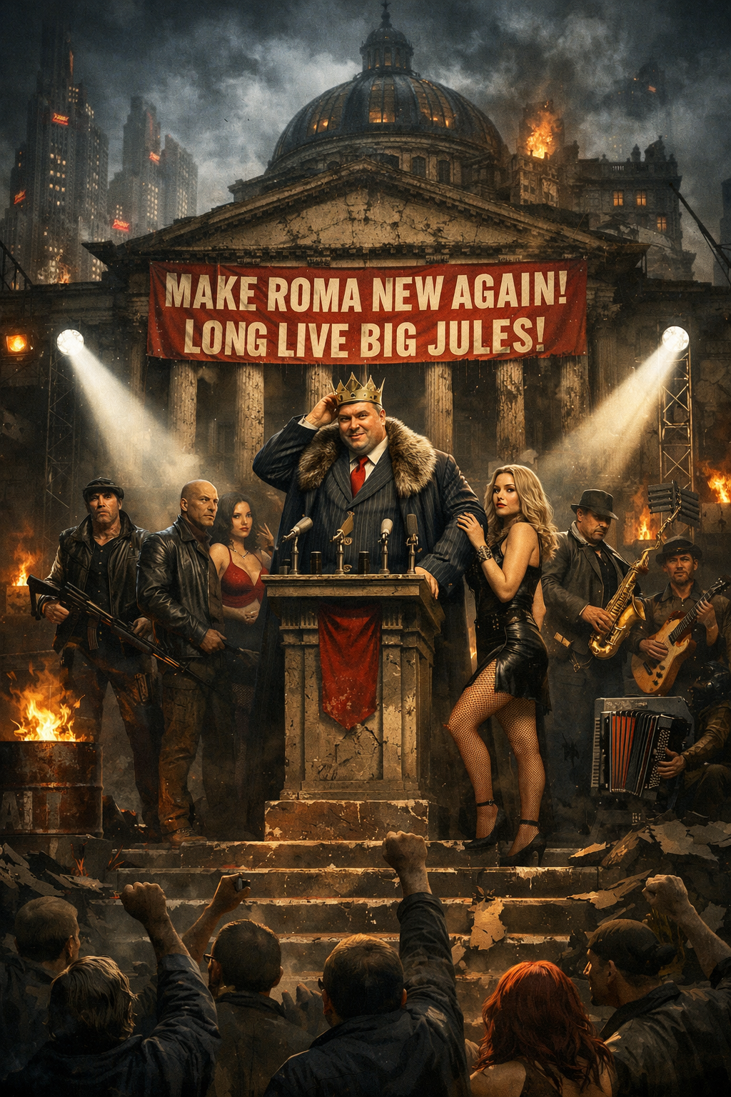 Big Jules Xavier is the charismatic and ambitious leader serving New Roma, a dystopia rocked by years of civil war and apocalyptic strife. A popular leader, Jules is set on seizing ultimate power to restore New Roma to its former glory. But some among his ranks are skeptical of his methods and the implications of unchecked power.